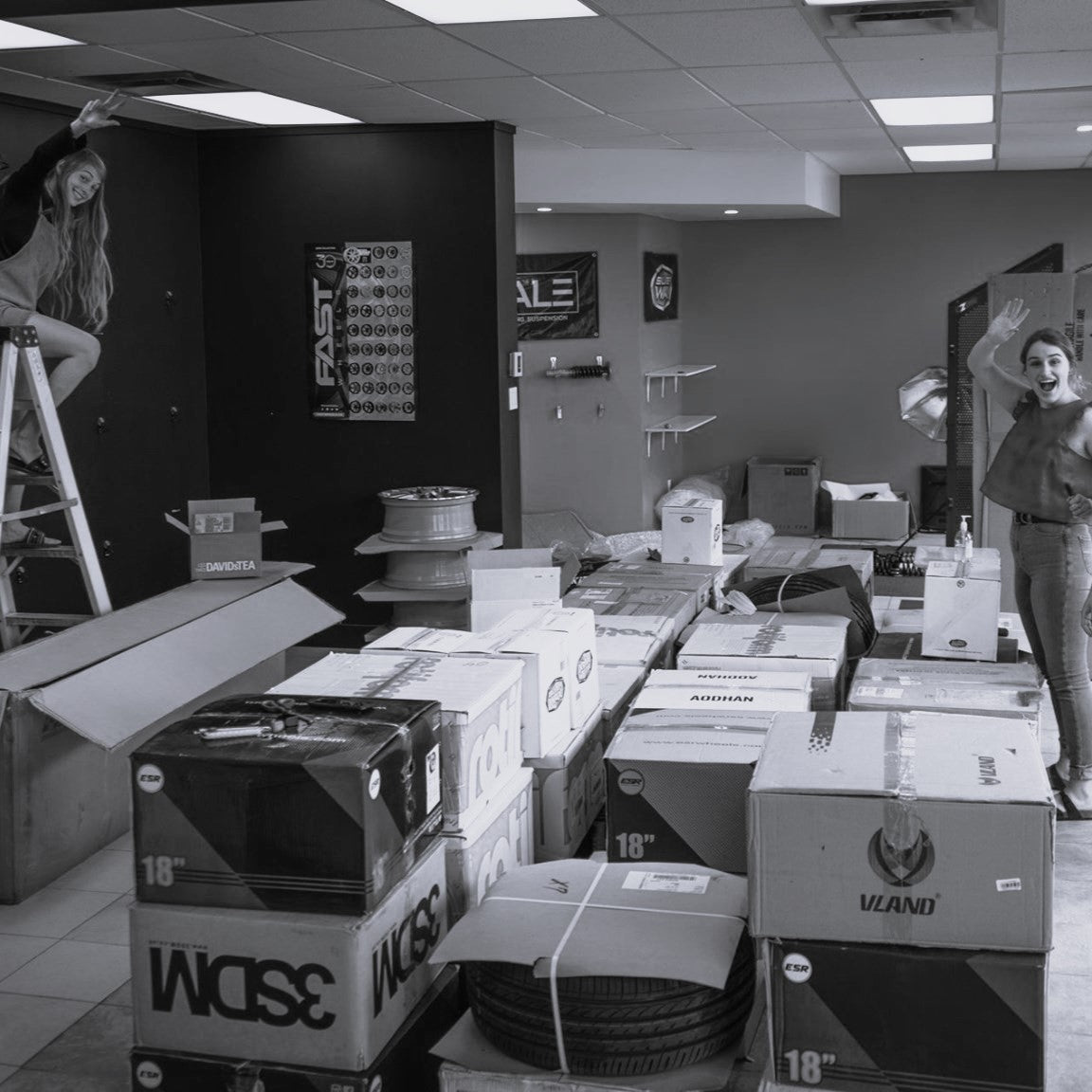 In our new spot, we've got a garage with a massive 14-foot door and a cool showroom. This expanded space lets us hook up all the parts on our customers' rides and gives us room for a much larger inventory.